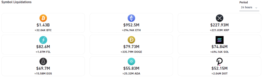 • Суммарный объем ликвидаций за последние 24 часа превышает $3.75 млрд.