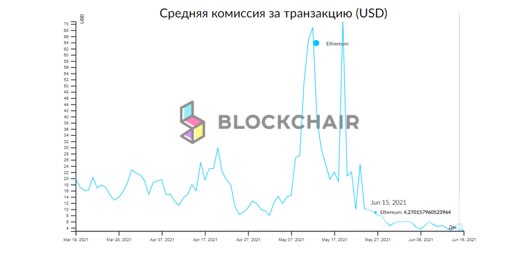 Средняя комиссия за одну операцию в сети Ethereum сегодня составляет около $5, согласно данным Blockchair. Хотя в середине мая она доходила до $70.