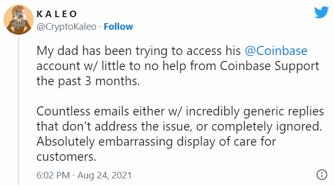 «Мой отец на протяжении трех месяцев пытался достучаться до поддержки Coinbase, но безрезультатно. Сотрудники биржи либо не решают проблему, либо вовсе игнорируют обращения». Источник