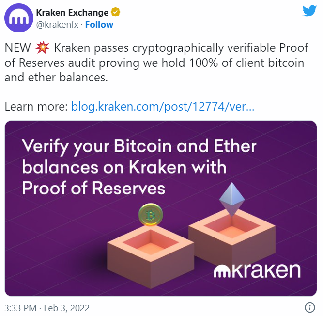 • Благодаря новому инструменту, клиенты Kraken теперь могут проверить, подкреплены ли их средства реальными активами.