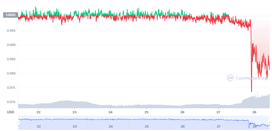 «Пока что резкие падения не повлияли на другие стейблкоины. Все, что мы видим, это как люди убегают от UST и MIM к другим стейблкоинам».