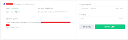 Предложение о покупке USDT с оплатой на карту Сбера. Источник