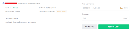 Действительно, если сейчас зайти на Binance P2P, то вышеуказанных способов оплаты не увидишь. Однако пользователи нашли способ обхода установленных ограничений. Они используют функцию «Переводы через конкретный банк», где указывают попавшие под ограничения банки. Часто можно встретить альтернативные описания банков. Например, вместо «Сбербанк» используются названия «СБРБАНК», «СБ» или «Зеленый банк»: