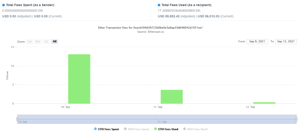 • Размер уплаченных при взаимодействии с контрактом комиссий уже превысил сумму в $50 000.