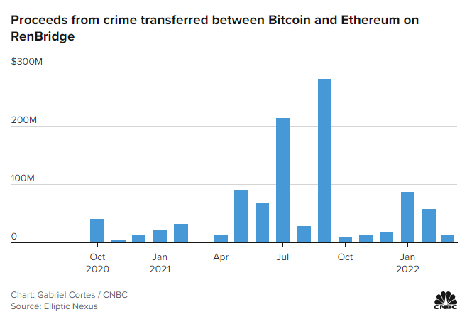 Доходы преступников, переведенные в сетях Bitcoin и Ethereum через RenBridge
