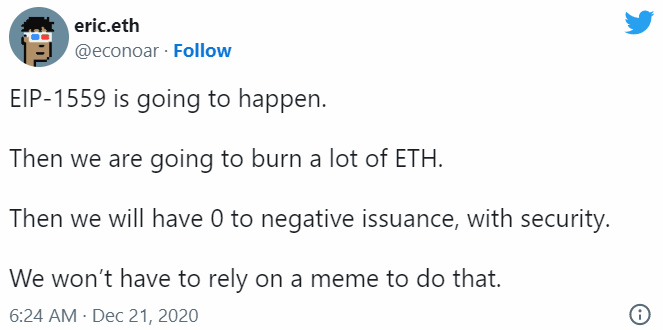 «Скоро будет EIP-1559. После этого мы сожжем много ETH. Тогда у нас будет нулевая или отрицательная инфляция». Источник