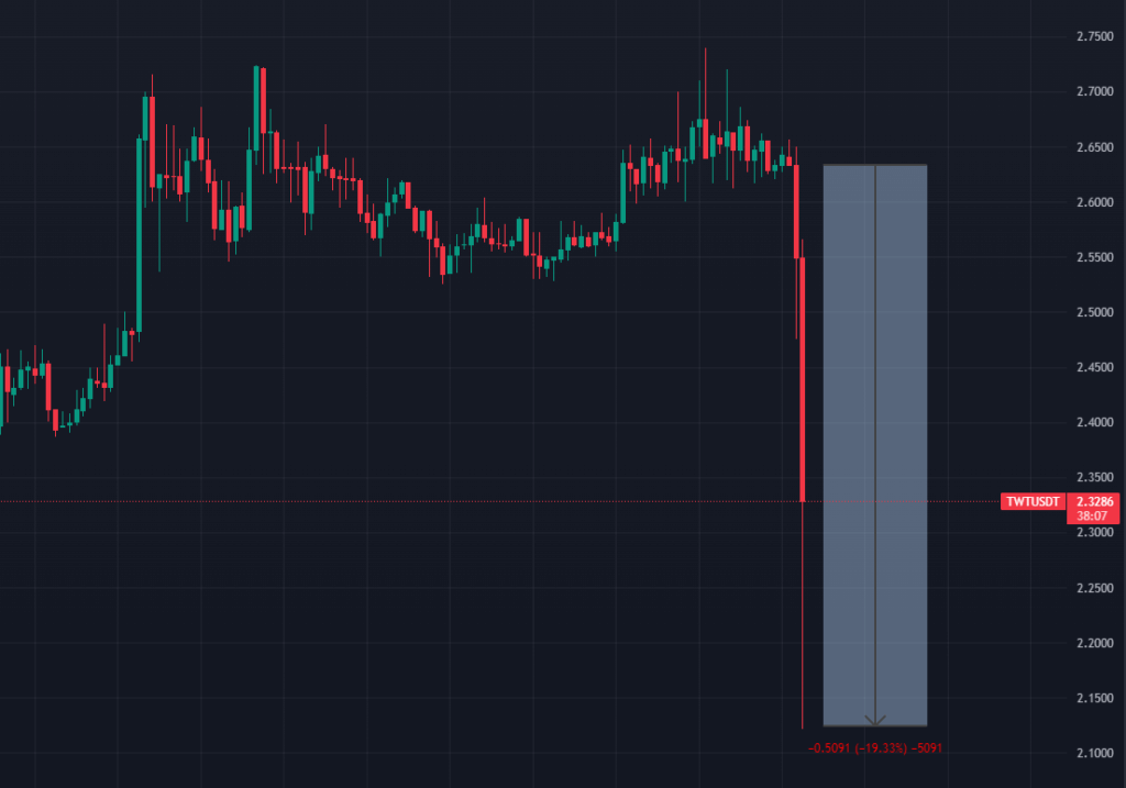 BNB отреагировал на новость незначительным падением в пределах 5%. В то же время TWT упал на целых 20%.