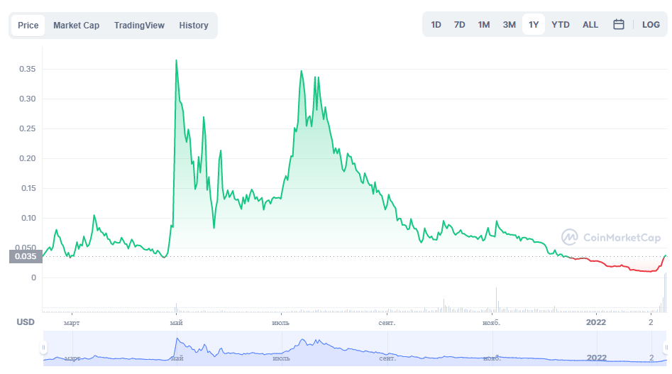Однако с 3 февраля наблюдается стремительный рост цены токена. Он вырос уже более чем в 4 раза и сейчас торгуется около отметки $0.035. Почему?
