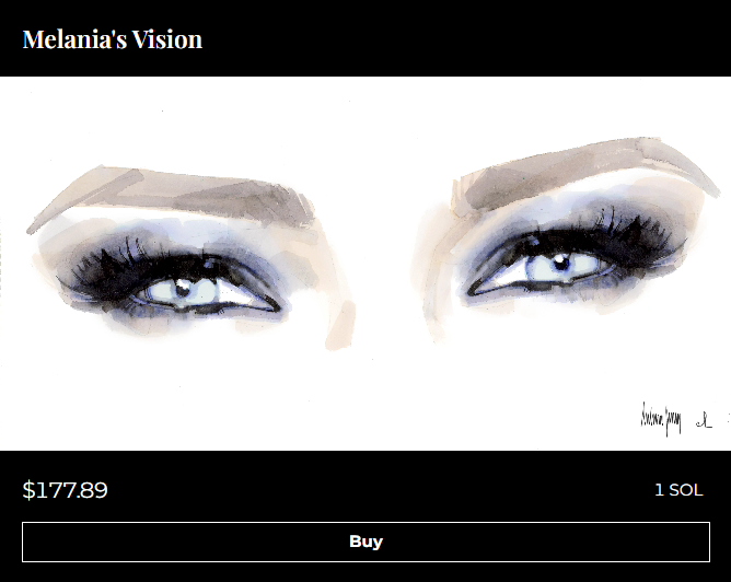 Бывшая первая леди США Мелания Трамп объявила о запуске собственной NFT-платформы и NFT-токенов на ней. Решение реализовано на блокчейне Solana. Первым выставленным NFT является рисунок ее глаз под названием «Видение Мелании», стоимость которого составляет 1 SOL ($178).
