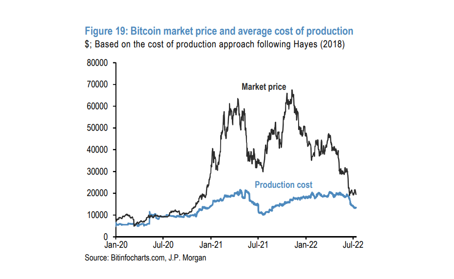 • JPMorgan считают, что это плохой признак, потому что себестоимость майнинга воспринимается некоторыми участниками рынка как нижний предел падения цены на медвежьем рынке.