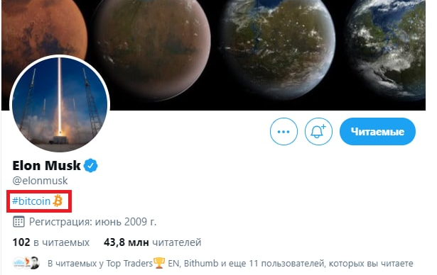Интересен тот факт, что генеральный директор Tesla Илон Маск поставил у себя в Twitter хештег #bitcoin в конце января.