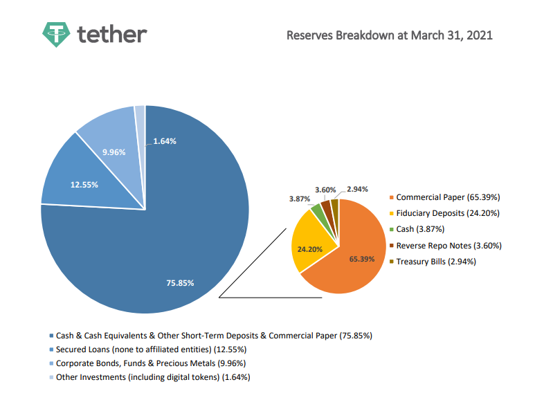 Эмитент стейблкоина USDT компания Tether впервые с 2014 года опубликовала информацию о своих активах по состоянию на 31 марта 2021 года: