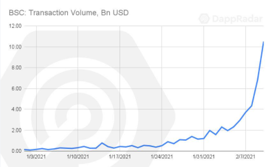 «В январе BSC достигла рекордных значений по объему транзакций и количеству уникальных активных адресов. Если данная тенденция сохранится в феврале, Binance Smart Chain может стать сетью №1 по объему транзакций», — пишут исследователи DappRadar.