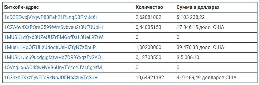 Некоторые адреса злоумышленников. Источник