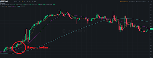 Интересно, что несмотря на всплеск активности и резкий рост спроса на USDT, курс гривны по отношению к стейблкоину не сильно вырос. В течение последнего времени гривна даже укрепляется: