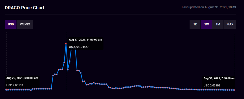 Недельный график токена DRACO. Источник.