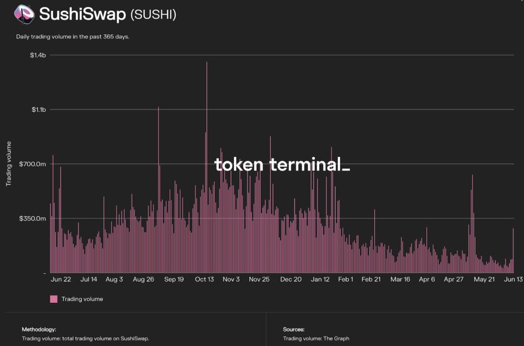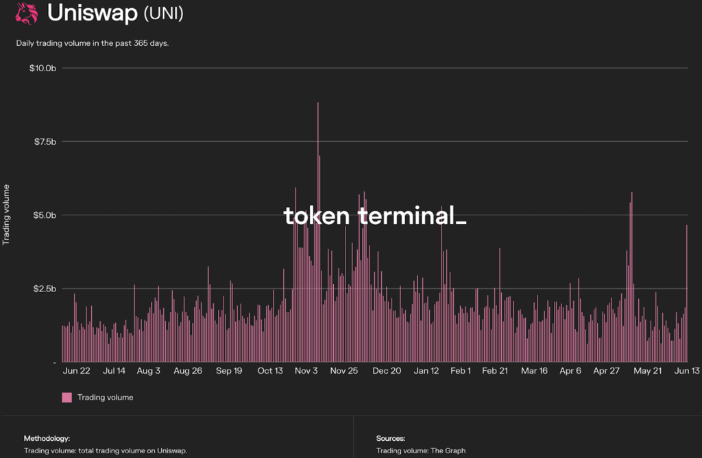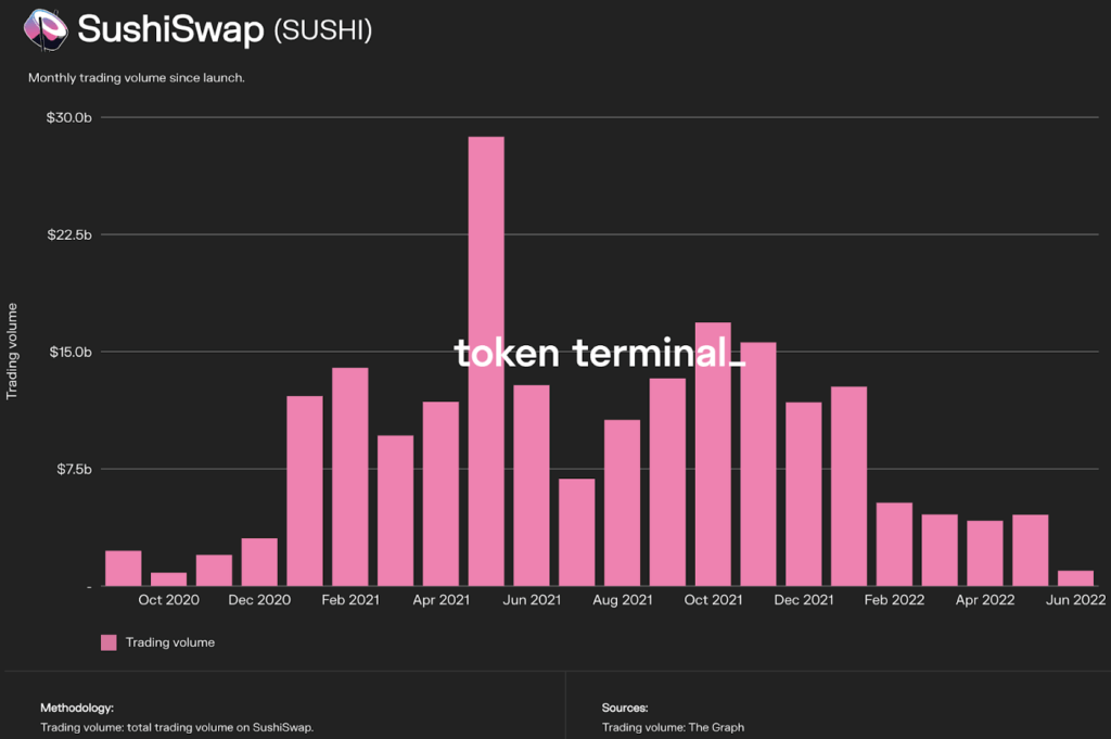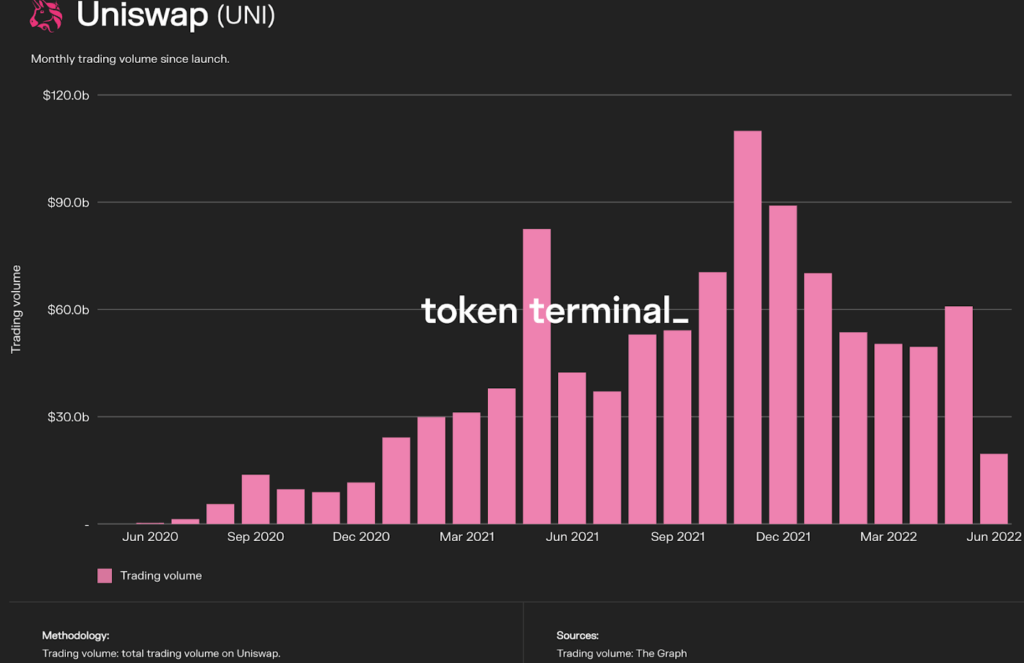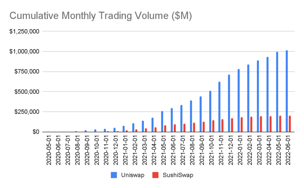 Uniswap и SushiSwap берут комиссии за торговлю. Ключевым показателем для определения их размера является общая сумма комиссий, начисляемых протоколу (доход), которая также связана со средним объемом суточных торгов.