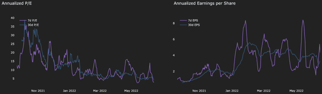 Но, даже несмотря на столь сильное падение, фундаментальные принципы LOOKS потрясающие! Это второй NFT-маркетплейс по объему торгов. Помните, что доходы от протокола распределяются между держателям токенов управления. Следовательно, его соотношение P/E очень дешевое.