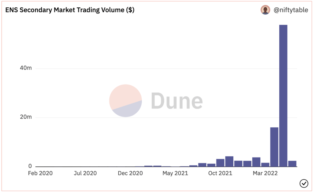 Стоимость регистрации домена «.eth» зависит о того, как много символов вы используете, и здесь также есть ежегодная комиссия. Это значит, что протокол имеет регулярную годовую выручку (ARR). Конечно, можно отказаться от своего домена, но, как мы знаем, сложнее всего получить первого покупателя. Часть из тех, кто создаст свой домен, будет ежегодно продавливать свою подписку.