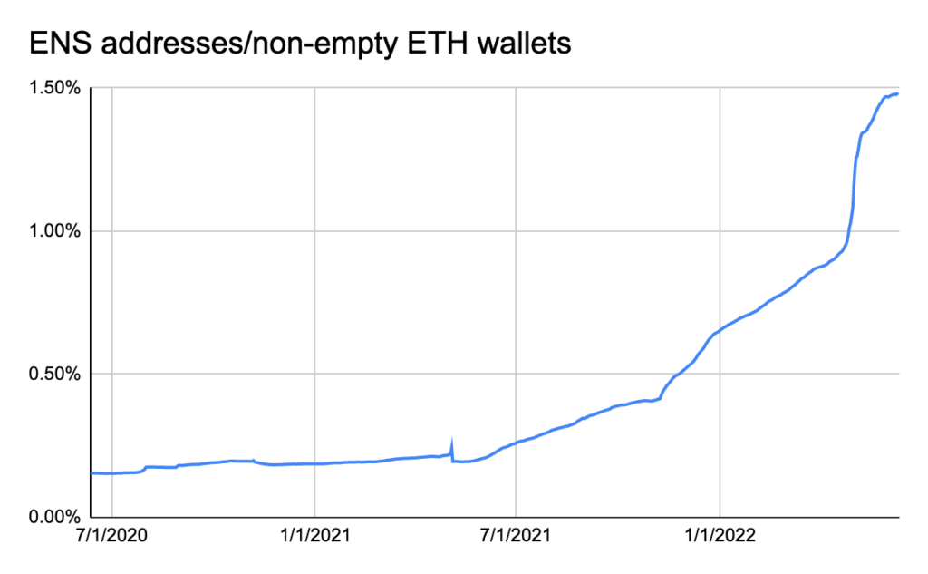 Сегодня число ENS-доменов растет в геометрической прогрессии, но их полный потенциал еще не раскрыт. Каждый ETH-кошелек с ненулевым балансом может приобрести ENS-домены. На приведенном ниже графике показан охват рынка ENS.