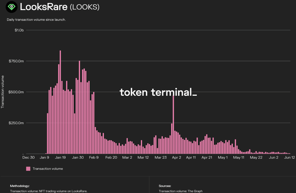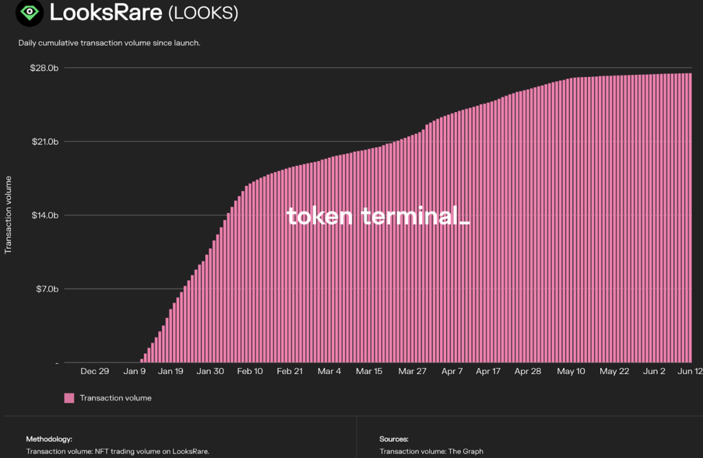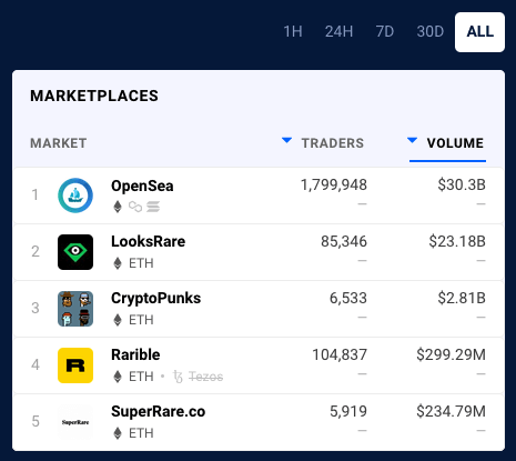 По данным таблицы, LooksRare занимает второе место после OpenSea. Да здравствует дуополия (монополия двух конкурирующих компаний).