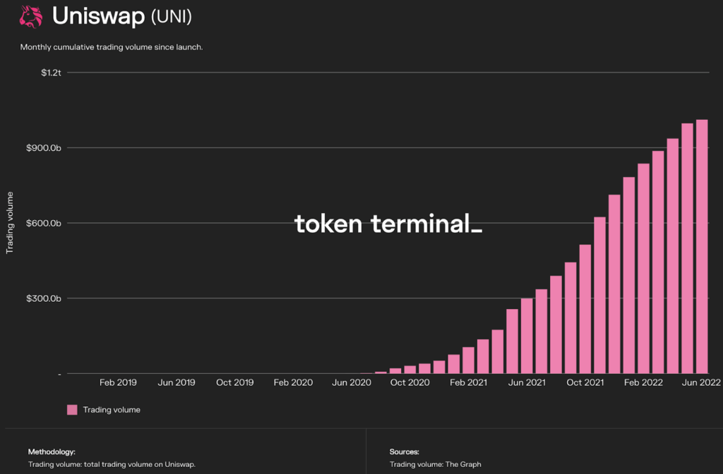 Uniswap — это крупнейшая DEX по среднему объему суточных торгов. Дизайн этого протокола, на мой взгляд, самая первоклассная DeFi-технология из всех когда-либо существовавших на рынке. Конечно, Uniswap не первый децентрализованный сервис по обмену активами на базе Ethereum. Например, на рынке до этого работал проект EtherDelta среди прочих. Однако именно команда Uniswap взяла за основу спотовую DEX и трансформировала ее в самый революционный DeFi-сервис на рынке.
