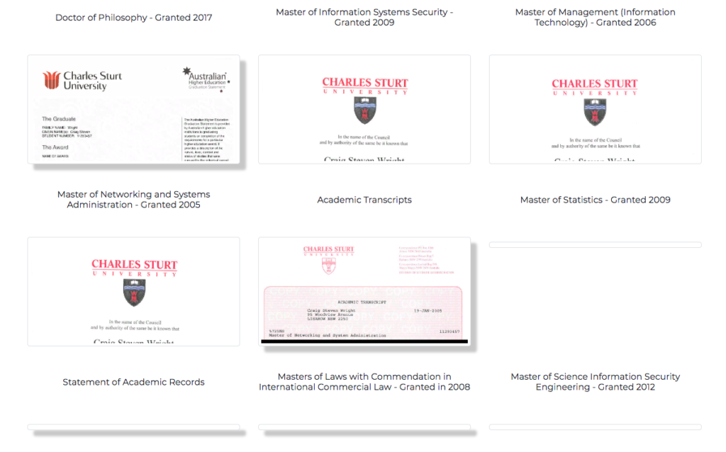 - В переписке со своим другом программистом Дейвом Клейманом, датированной концом 2008 года, Райт сообщает, что ему нужны деньги на покупку сотен компьютеров. Также в письмах к Клейману есть PDF, в котором Райт соглашается получить контроль над слепым трастом Tulip Trust, где находится 1.1 миллиона биткоинов, которые не могут быть перемещены до 2020 года. Файл подписан ключом Клеймана;