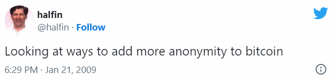 К слову, сейчас многие знают, что сеть Bitcoin обладает так называемой псевдо-анонимностью — для использования блокчейна не нужно предоставлять свои личные данные, однако если хотя бы однажды какой-то из адресов был связан с личностью владельца, все его остальные адреса, на которые были осуществлены транзакции с деанонимированного адреса, также известны стороннему наблюдателю. Финни еще в 2009 году сообщил, что работает над решениями, которые смогут увеличить анонимность транзакций в сети Bitcoin.