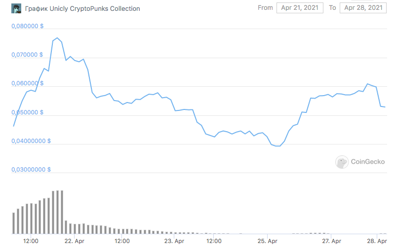 Недавно игроки крипторынка получили доступ к 50 «криптопанкам», которые были объединены в коллекцию Unicly CryptoPunks (uPUNK). При этом вся коллекция была разделена на 250 млн токенов uPUNK. В день выхода статьи цена одного токена составляла $0.053, а капитализация всего проекта — $13.34 млн.