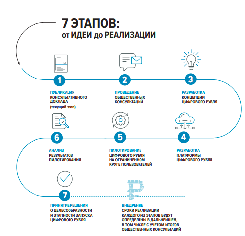 В октябре 2020 года Банк России опубликовал консультационный доклад, в котором рассмотрел возможность выпуска цифрового рубля. Его разработкой уже занимается специальная рабочая группа.