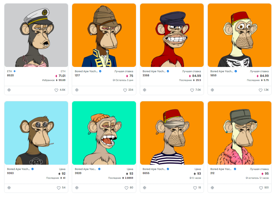BAYC — популярная NFT-коллекция, выпущенная весной прошлого года. Она представляет собой 10 000 человекообразных NFT-обезьянок, цена которых иногда доходит до нескольких сотен тысяч долларов. Селебрити ставят NFT-обезьянок на аватарки, упоминают в своем творчестве, ходят на тематические мероприятия. Среди владельцев Bored Ape: Илон Маск, Джастин Бибер, Эминем, Пэрис Хилтон, Снуп Догг, Джастин Бибер и Серена Уильямс среди прочих.
