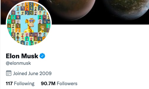 4 мая Илон Маск поменял аватарку в Twitter на коллаж из NFT-обезьянок BAYC — это спровоцировало рост цены токена на 15%