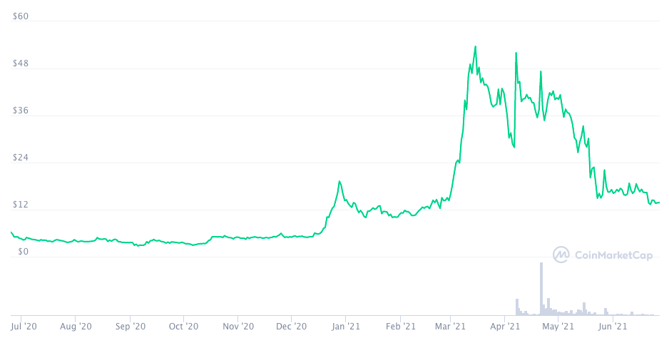 В прошлом году фанатские токены росли вместе со всем рынком — некоторые из них выросли в цене в несколько десятков раз. Этой весной, вслед за общей коррекцией, цены на такие токены начали снижаться, и большинство из них просели в стоимости в несколько раз. Однако перед чемпионатом Европы по футболу 2020 цены вновь пошли вверх и прибавили десятки процентов. Но сейчас этот рост почти растерян.