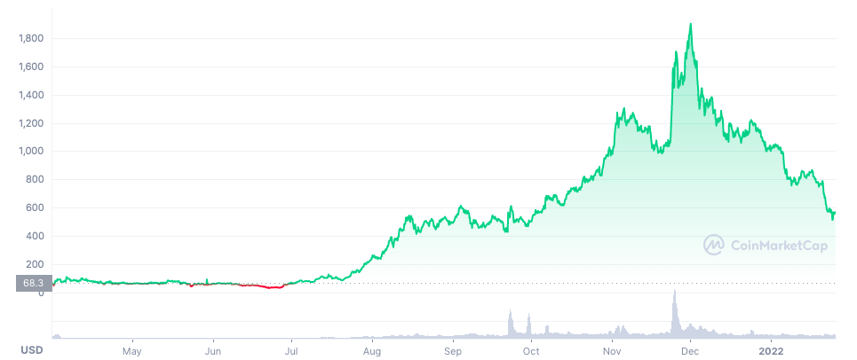 - Инвестиционная привлекательность цифровых активов P2E-игр. В прошлом году цены на некоторые токены P2E-проектов выросли в десятки и сотни раз. Например, AXS от Axie Infinity вырос в 157 раз, SAND от The Sandbox в 146 раз, а MANA от Decentraland в 40 раз. В условиях возможной криптозимы в 2022 году такая доходность не может быть гарантирована, но инвесторы верят в сектор и в случае бычьих настроений продолжат разгонять цены дальше.