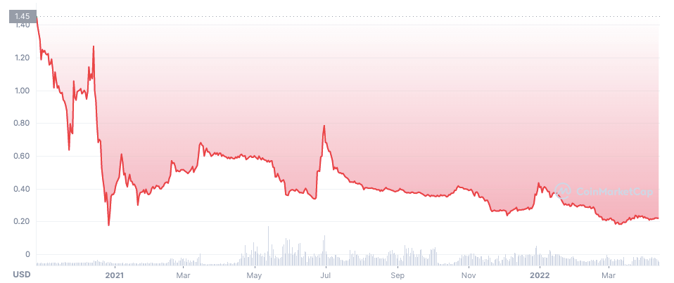 EVER не очень популярен среди инвесторов. С момента листинга цена монеты опустилась с $1.45 до $0.24. Капитализация проекта — $299 млн.