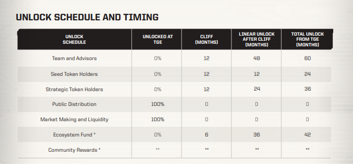 Есть график анлоков, не все токены доступны сразу: