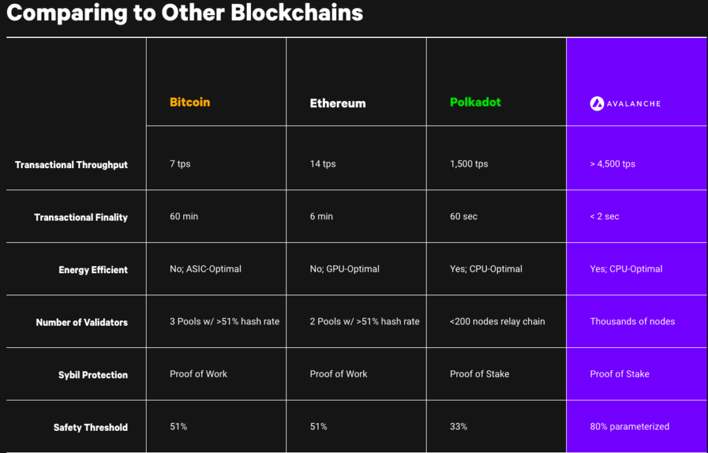 Сравнение Avalanche c Bitcoin, Ethereum и Polkadot. Источник