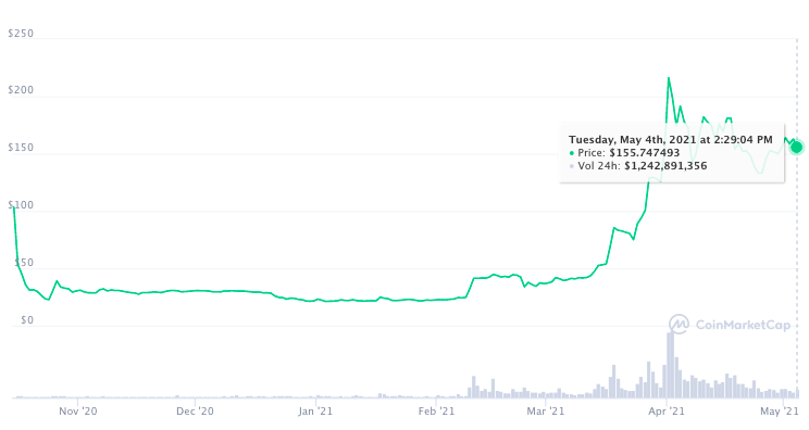 1 апреля команда Filecoin заявила, что услугами сети пользуются такие компании, как Wikipedia, OpenStreetMap, gnomAD, Project Gutenberg и OpenAQ. Это за день подняло цену на 40% — со $146 до $221.