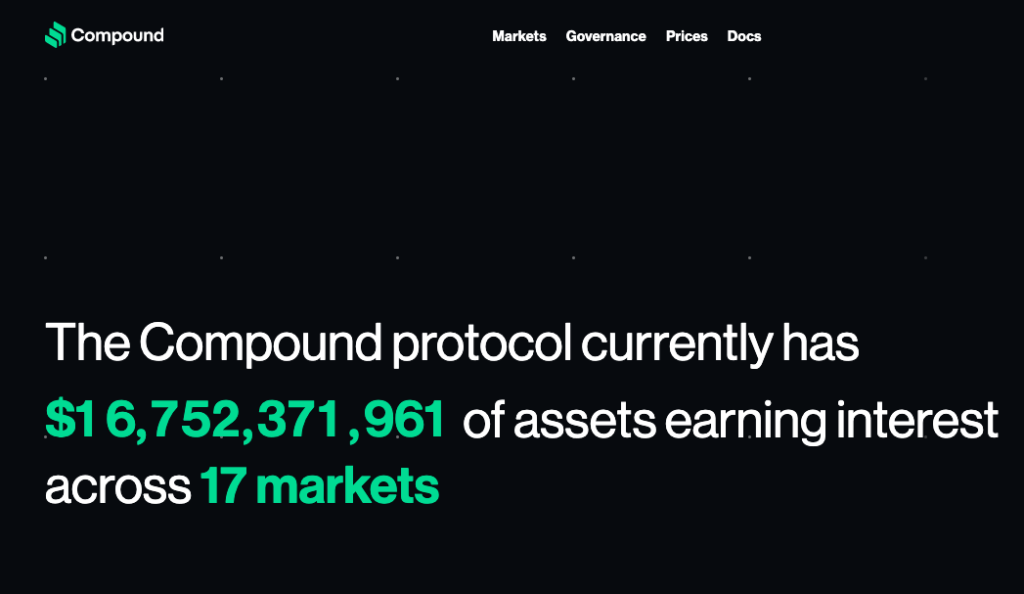 Сейчас Compound поддерживает рынки для 18 криптовалют: ETH, DAI, WBTC, WBTC (Legacy), USDT, BAT, ZRX, UNI, COMP, TUSD, SAI, LINK, MKR, AAVE, YFI, SUSHI, REP, USDP.