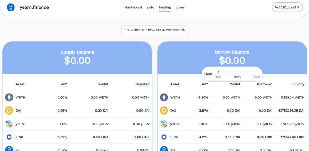 Данный продукт позволяет пользователям брать поддерживаемые yearn․finance активы в кредит. Напомним, что протокол поддерживает DAI, USDC, USDT, TUSD и SUSD, а также ETH, LINK, BAT, KNC, MKN, REP, SNX, ZRX и WBT. На данный момент сервис Lending представлен в бета-версии.