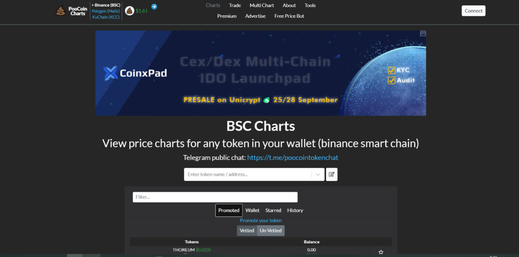 PooCoin предоставляет пользователям доступ к графикам для токенов, запущенных в блокчейнах Binance Smart Chain (BSC), Polygon (Matic) и KuChain. Среди главных функций PooCoin: