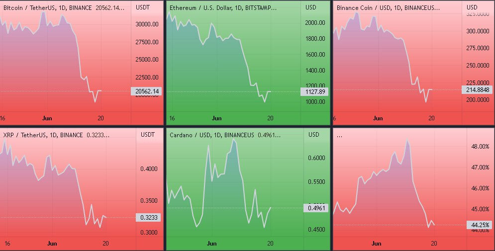 В выходные дни новая волна нисходящего движения привела к падению котировок BTC — и в моменте биткоин даже достиг уровня $17 600. Но сегодня активу удалось отыграть падение — котировки вновь вернулись к уровню $20 500.