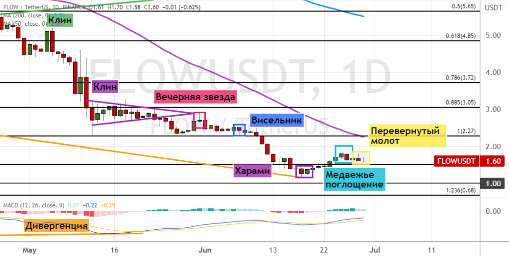 Однако модель теханализа «Харами» и дивергенция между ценой на графике актива и осцилляторе MACD указывают на то, что в среднесрочной перспективе котировки FLOW могут вновь пойти вверх. Подтверждением этого прогноза послужит закрытие дневных свечей выше сопротивления $2. Первой целью для котировок FLOW выступит уровень $2.25, где также проходит линия 50-дневной SMA.