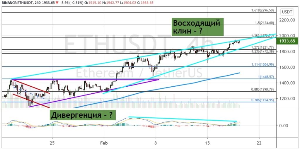 График ETH/USD, четырехчасовой таймфрейм.