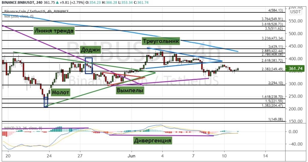 График BNB/USDT, четырехчасовой таймфрейм.
