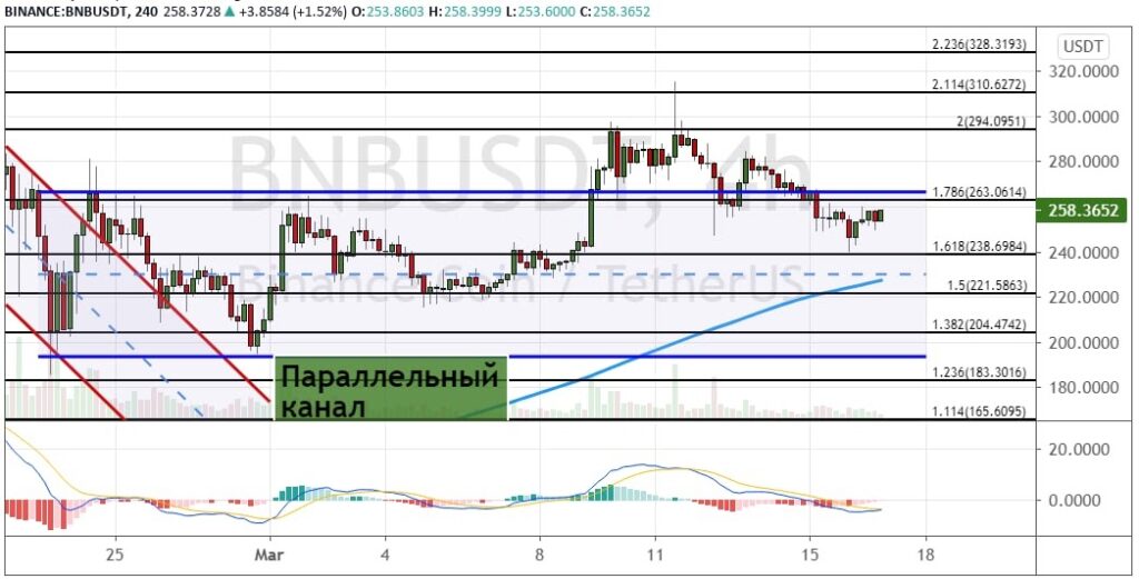 Сопротивлениями для текущих котировок выступают уровень $263 и верхняя граница модели теханализа «Параллельный канал». А более глубокое снижение будет встречено поддержками на $220 и $200. Пока это движение котировок BNB больше напоминает «ловушку» для продавцов.