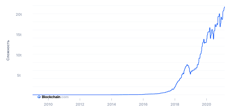 Уровень сложности майнинга не является постоянным. Этот показатель корректируется каждые 2 016 блоков, или в среднем каждые 14 дней. Чем больше майнеров, тем выше сложность, и наоборот.