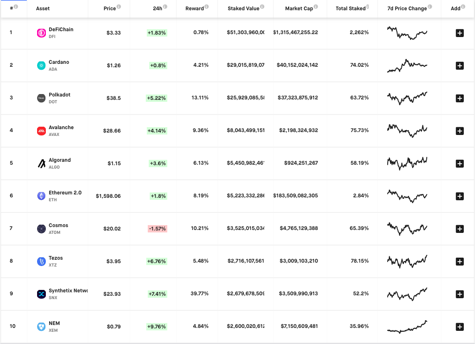 Поэтому на смену PoW-майнингу приходит стейкинг в PoS- и DPoS-алгоритмах консенсуса (DPoS — Delegated Proof-of-Stake, делегированное доказательство доли владения). Такой способ добычи новых монет дешевле, экологичнее и децентрализованнее. Средняя доходность стейкинга — от 5 до 10%.