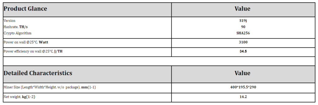 Как мы уже писали выше, биткоин-асики настроены исключительно под майнинг этой криптовалюты. То есть они разработаны таким образом, чтобы выполнять одну задачу наиболее эффективно с точки зрения энергозатрат. Например, возьмем одну из последних моделей Antminer S19j от компании Bitmain.