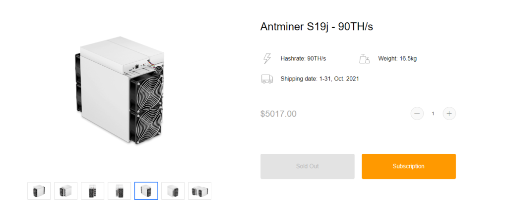 Сегодня существует несколько производителей, которые занимаются разработкой асиков. Самым популярным является компания Bitmain. Покупка осуществляется, казалось бы, довольно просто: заходите на сайт Bitmain и выбираете желаемую модель. Однако если вы зайдете на этот сайт сейчас, то увидите, что модели, представленной на скриншоте, нет в наличии.